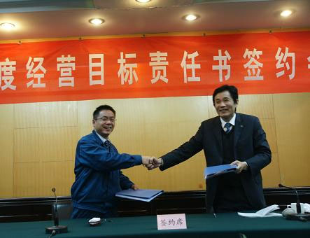 “百億企業(yè)”目標(biāo)有望今年實(shí)現(xiàn) 2009年12月30日,升華集團(tuán)2010年度經(jīng)營目標(biāo)責(zé)任書簽約會(huì)議舉行,升華今年完成超百億的奮斗目標(biāo)被分解到各主要骨干企業(yè)。這也是升華歷年來,年度目標(biāo)分解最早的一年。會(huì)上,董事長夏士林分別與升華拜克、云峰新材、華源顏料、浙江輕紡、升華房產(chǎn)等集團(tuán)所屬一級子公司董事長或總經(jīng)理簽署了新一年度的經(jīng)營目標(biāo)責(zé)任書??偨?jīng)理吳夢根主持會(huì)議,并就2010年度經(jīng)營目標(biāo)作了指導(dǎo)性說明。今年是升華集團(tuán)“三年超百億,五年上臺階”的壓軸之年,由于遭受突如其來的金融危機(jī)沖擊,給三年超百億奮斗目標(biāo)中帶來了較為嚴(yán)峻的考驗(yàn)。但是,升華人不畏艱險(xiǎn),敢于面對,善于創(chuàng)新,齊心協(xié)力終于渡過了這一難關(guān),順利實(shí)現(xiàn)了逆勢增長,從而也為新一年度實(shí)現(xiàn)既定目標(biāo)夯實(shí)了基礎(chǔ)。在當(dāng)天的簽約儀式上,夏士林強(qiáng)調(diào)指出:我們看重資產(chǎn)回報(bào)率、看重經(jīng)營利潤,但更在乎于技術(shù)創(chuàng)新等有助于企業(yè)可持續(xù)發(fā)展能力提升的分類指標(biāo)的考核??梢哉f,注重分類指標(biāo)的考核是升華實(shí)現(xiàn)“三年超百億,五年上臺階”目標(biāo),以及今后更長時(shí)期持續(xù)平穩(wěn)發(fā)展的航標(biāo)。夏士林還指出:2009年是我們升華發(fā)展中最艱難的一年,也是最快的一年,從經(jīng)濟(jì)指標(biāo)而言也是取得成績較為顯著的一年。從生產(chǎn)經(jīng)營情況來看,目標(biāo)考核,尤其是分類指標(biāo)考核的效果是明顯的,充分體現(xiàn)了各子公司的創(chuàng)