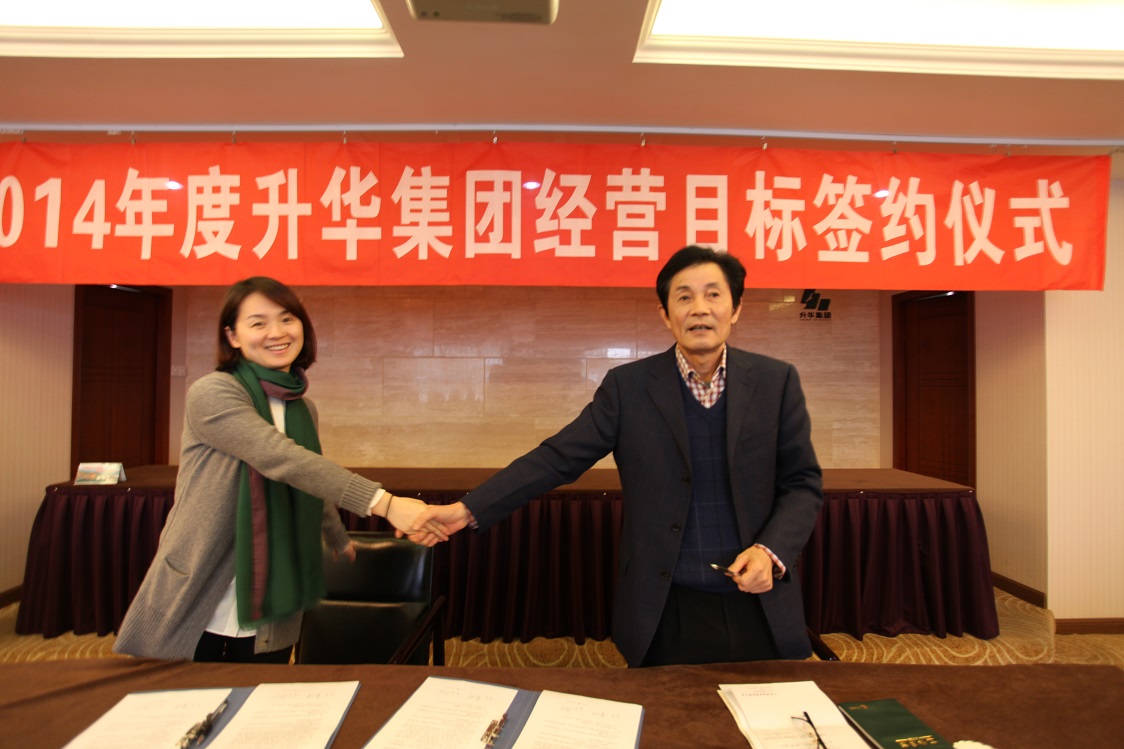 1月18日,升華集團(tuán)2014年及新三年經(jīng)營(yíng)目標(biāo)簽約儀式在升華大酒店舉行,集團(tuán)公司董事長(zhǎng)夏士林分別與集團(tuán)所屬一級(jí)子公司董事長(zhǎng)和集團(tuán)公司資金管理部門負(fù)責(zé)人在協(xié)議書(shū)上簽字。集團(tuán)公司總裁吳夢(mèng)根就考核指標(biāo)設(shè)置等作了解釋性說(shuō)明。此項(xiàng)協(xié)議的簽署,預(yù)示著升華新一輪發(fā)展大幕已經(jīng)開(kāi)啟。