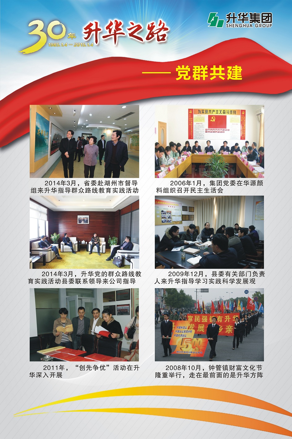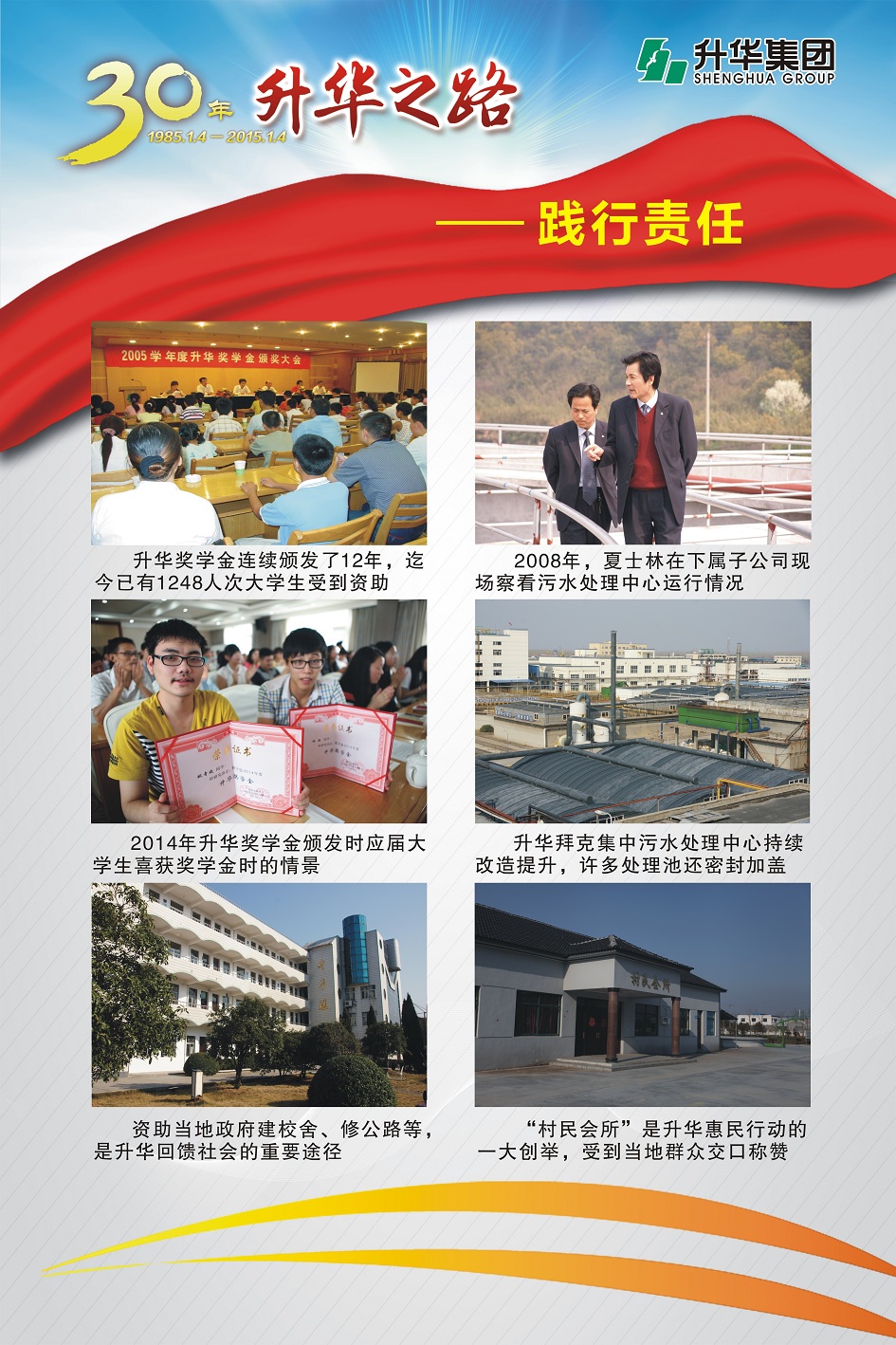 升華集團(tuán)即將迎來(lái)創(chuàng)立30周年。30年,半個(gè)甲子,在風(fēng)和日麗與驚濤駭浪中,升華艦隊(duì)揚(yáng)帆遠(yuǎn)航,經(jīng)受風(fēng)雨的洗禮,也收獲成功的喜悅。為了喜迎升華創(chuàng)立30周年,回眸升華走過(guò)的不同尋常的征程,本報(bào)特意收集了“30年升華之路”系列圖片,陸續(xù)在集團(tuán)所屬各子公司巡回展出。圖片展的內(nèi)容分為創(chuàng)業(yè)之初、領(lǐng)導(dǎo)關(guān)懷、重要節(jié)點(diǎn)、黨群共建、管理提升、品牌升華、踐行責(zé)任、謙恭之行、轉(zhuǎn)型升級(jí)、榮耀升華等章節(jié)。