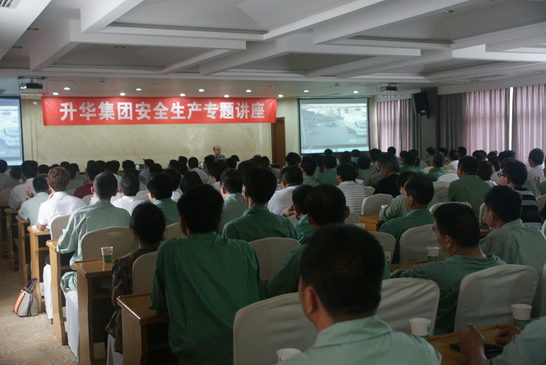 6月1日,集團(tuán)公司專門組織了160多名所屬制造業(yè)企業(yè)車間主任及以上生產(chǎn)管理人員在升華大酒店舉行安全生產(chǎn)知識培訓(xùn)。湖州市安監(jiān)局?;幪庨L李滿喜用生動的安全生產(chǎn)案例,以及如何排除安全隱患等主要內(nèi)容為大家進(jìn)行了專題演講。